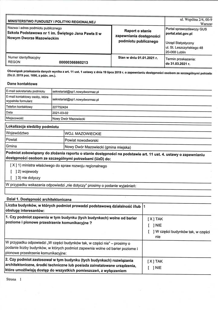 Raport o stanie zapewnienia dostępności podmiotu publicznego